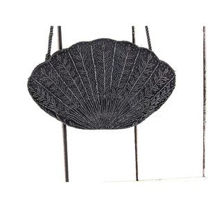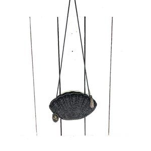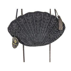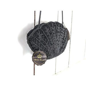 Vintage black velvet beaded shell shaped evening shoulder handbag purse