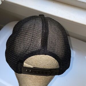 Vintage black & white snap back mesh back trucker hat with picture of Dye’s blue ‘57 Chevy on it