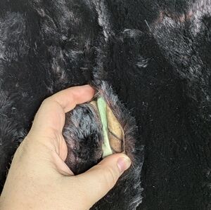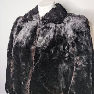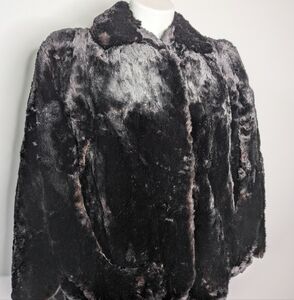 Vintage black/dark brown fur cape OS. One spot where the stitching is gone from the leather on the right top and a few discolored/thin spots (see photos). Black, but brown tones in certain light. The cape has been altered at the arm holes on the inside (see stitching). No material tag for what kind of fur. Hook closure. Originally from Smith Bridgman & Co, Flint MI.