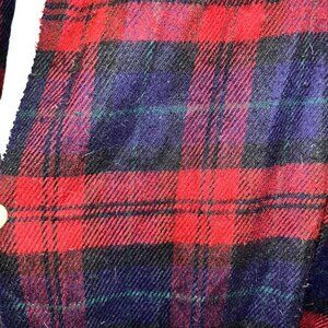 Vintage blue red cashmaire acrylic stewart plaid fringe trim scarf