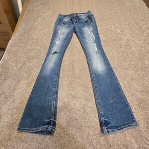 Vintage bohemian Distressed Ripped Embroidered Flare Amethyst Bootcut Jeans 7