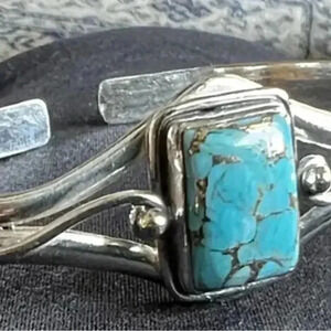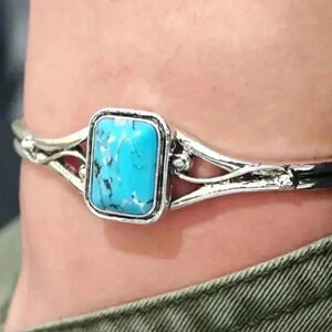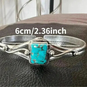 Vintage bohemian silver plated cuff bracelet with genuine turquoise stone zinc alloy material adjustable