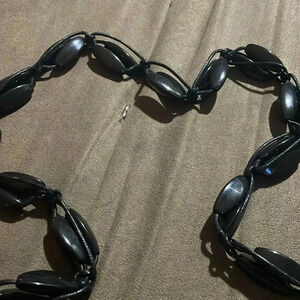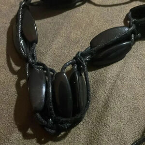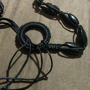Vintage boho beaded macrame belt, color black, measures 55” around