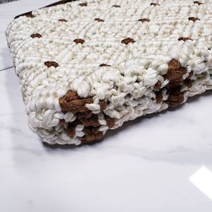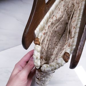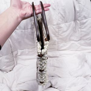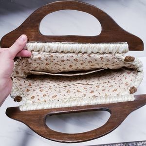 Vintage boho macrame crocheted wooden handle bag