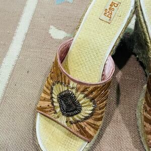 Vintage beaded woven wedges/platform sandals. Tan and pink embellished with a boho vibe. Size 9. So lovely! wedges