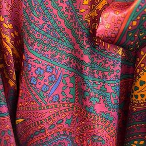 Vibrant paisley blouse featuring a stylish bow tie. Perfect for adding a pop of color to any outfit.
