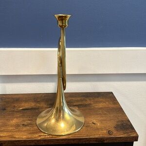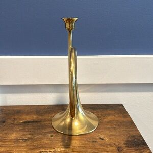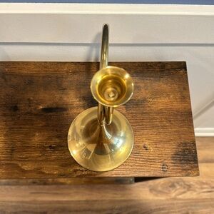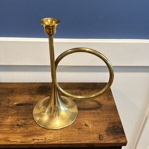 Vintage brass candlestick holder shaped as a horn solid