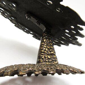 Vintage dark brass piece is in excellent condition with minimal aging. Hinged enameled door with Star of David open to reveal the Ten Commandments. Piece measures 4" high and 3 1/2" wide. A beautiful piece to add to a Judaica or Israeliana collection.