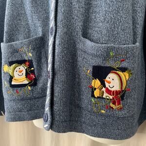 Vintage breckenridge cardigan Christmas sweater winter holiday snowman pockets L