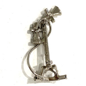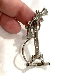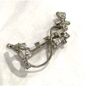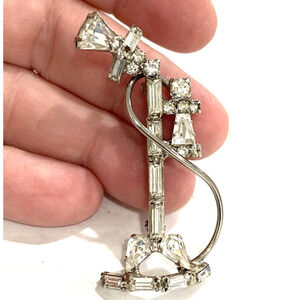 Vintage brooch silvertone and clear white rhinestone antique stick telephone pin
