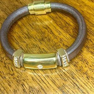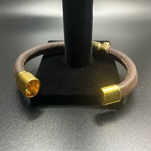 Vintage brown Leather and gold tone unisex bracelet with a magnetic closure.