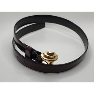 Vintage brown faux leather belt size small with gold hardware. Comes from a smoke free home.