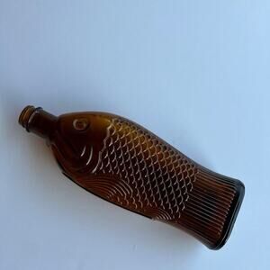*Vintage -antique cod liver oil brown fish shaped bottle, brown color. Very detailed fish shaped glass amber color bottle. Cod liver oil was used medicinally. A collectors addition.