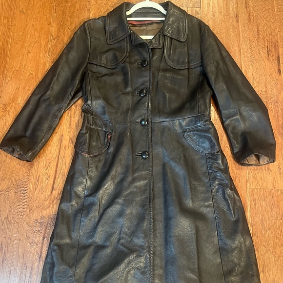 Step out in style with this vintage dark brown leather coat. Perfect for any occasion, this coat offers both sophistication and comfort. Vintage 1970s., here are the specs:
