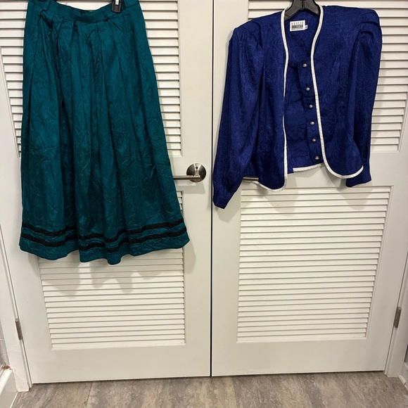 Pairing this teal skirt and purple blouse. They make elegant whimsical additions to the wardrobe. Both size 6.
