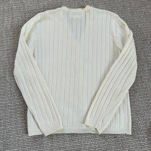 Cream cardigan with button-up front, ribbed knit and v-neck cardigan #preppy #cardigan #vintage #coquette