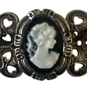 Vintage cameo brooch pin with matching cameo clip on earrings.