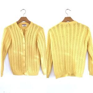 Vintage | canary yellow | 100% wool | Cable Knit cardigan Sweater