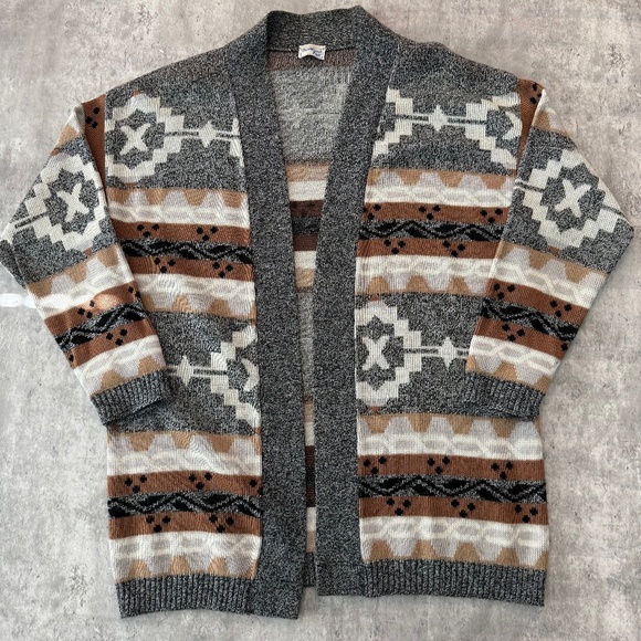 Vintage cardigan western sweater aztec print bohemian lagenlook open sweater M