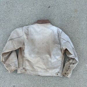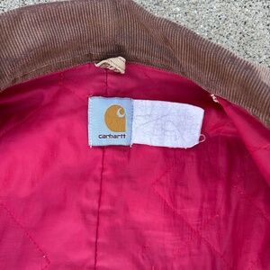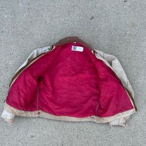 Vintage carhartt Detroit jacket large 1980s red lined. Distressed