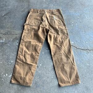 Vintage carhartt brown double knee work wear carpenter pants. Good pair! Measure 35x30 and a 9.5 leg opening. Please check measurements before purchasing. I do my best to show any flaws in pictures. Quick shipping! Bundles encouraged!