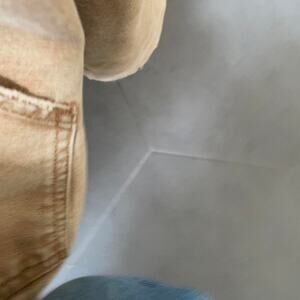 Classic workwear jacket with a well-worn patina and tons of character. Tan duck canvas with contrasting black corduroy collar. Quilted lining for warmth. Heavy brass zipper and Velcro neck closure. Tagged size Large Regular (C26 BARN). Some wear throughout including minor fraying at collar and discoloration, but structurally great with tons of life left.