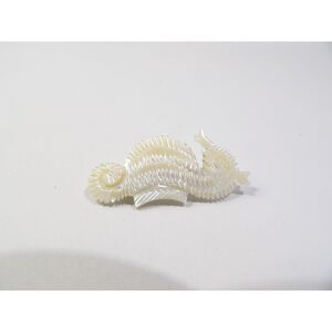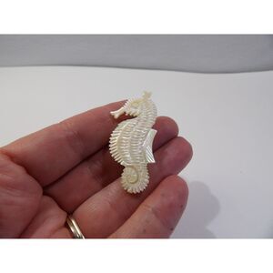 Vintage carved mother of pearl seahorse pin, white, 1.75" length