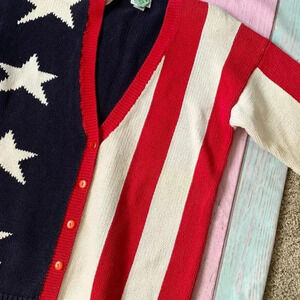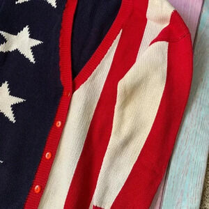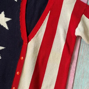 Vintage casual corner 100% cotton American flag V-neck button up sweater