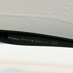 Vintage cat frame glasses by France Swank. Mint condition. No scratches or signs of wear. Black acetate rims adorned with double metal inlay stars at sides as shown. Current prescription unknown, can be customized as you wish at an optometrist. Perfect for that pinup rockabilly look! Measurements upon request.