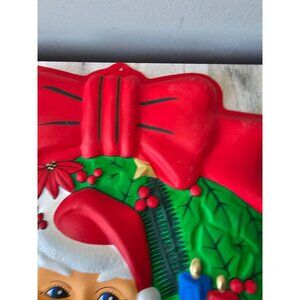 Vintage celluloid Santa hanging wreath bell molded poinsettia Xmas decor