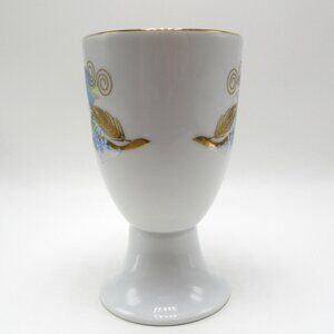 Beautiful, vintage, Kiddush cup is in excellent condition with no chips or cracks. It may be ceramic or china. The cup stands 5" tall with wonderful design and gold leaf trim. Add a bottle of Kosher wine and it makes a nice gift.