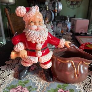Vintage ceramic Atlantic Mold Santa with sack figurine/ planter , great condition, no chips or cracks , made in 1976 , fun piece