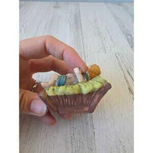 Vintage ceramic baby Jesus Xmas Nativity crib manger statue decor