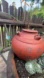 Vintage ceramic burgundy Asian style engraved pottery nesting teapot