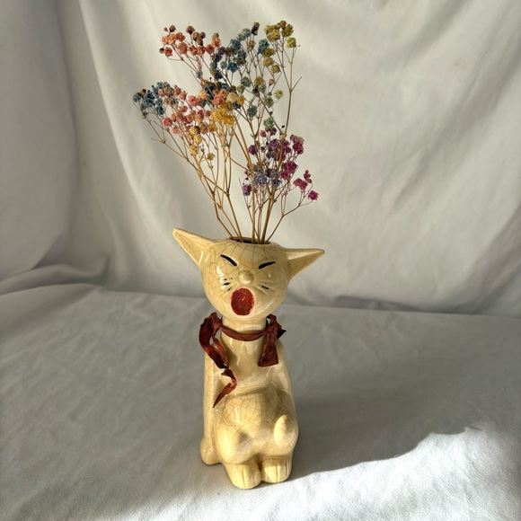 Vintage ceramic cat figurine vase holder home decor accent piece kitsch trinket