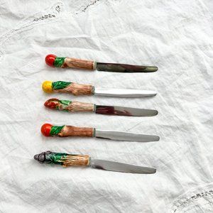 Vintage ceramic fruit and cheese knives Set of 5 Made in Japan