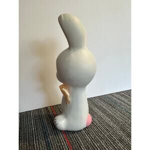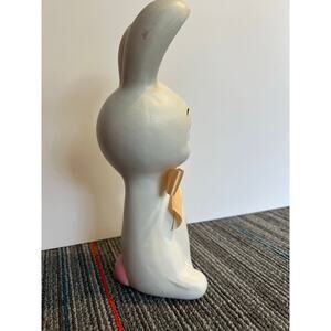 Add a touch of whimsy to your home decor with this adorable vintage ceramic bunny rabbit figurine! With its charming big eyes and classic kitsch style, this bunny is sure to bring a smile to your face. Perfect for collectors of vintage ceramics or anyone who loves cute and quirky decor. MCM design Not signed