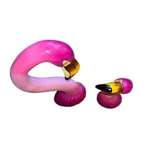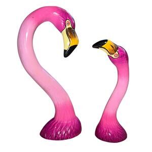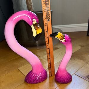 Vintage chalk wear flamingo heads hand painted figurines beach house