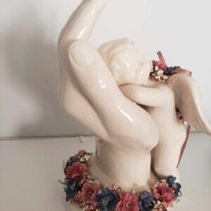Vintage little cherub resting on Jesus' hand. Absolutely precious! This is in excellent condition for it's age. I do not see any chips, cracks or blemishes (it may possibly have tiny manufacturing flaws) Please see all pictures as they show item and condition.