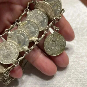 Vintage cinco centavos coin bracelet, some cleaning needed otherwise beautiful piece