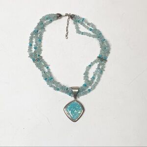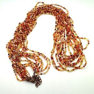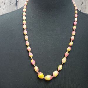 Very vintage Cinnabar necklace encased within gold with red coral like beads in the chain. 17 inches. Much prettier than the actual picture.
