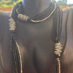 Vintage circa 1980s Metal Accent Multi-Thread Black Beaded and Layered 32”