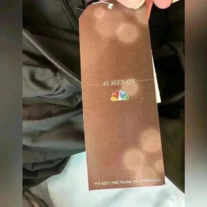 Backless halter dress in a black satin. It has the cutest bubble skirt. This line of dresses was done in conjunction with the TV show Fashion Star in 2011! Measures approx 13.25” at waist, 33” long.
