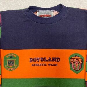 Vguc pfsf long sleeve tee navy blue orange maroon green boysland athletic wear no tears or holes some fade small size 4 small mark on the left elbow