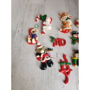 Vintage clay dough bear Santa candy cane mistletoe ornament Xmas set