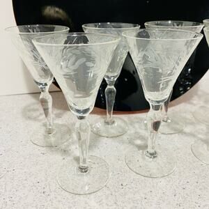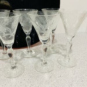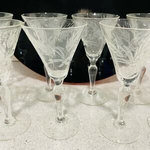 Vintage clear etched crystal cordial wine glasses 8 stems shots sherry 1 fl oz