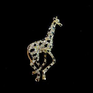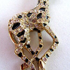 Vintage clear rhinestone & black enamel giraffe brooch - gold tone setting