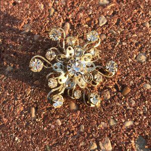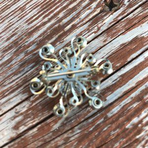 Vintage clear rhinestone snowflake star brooch pin. No markings on back. In great condition. Photos taken in natural light. Approximately 1 1/4".
