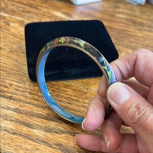 Elegant bangle bracelet featuring a beautiful floral design. The bracelet is heavy, beautiful coloring tones and images. Perfect for this summer.