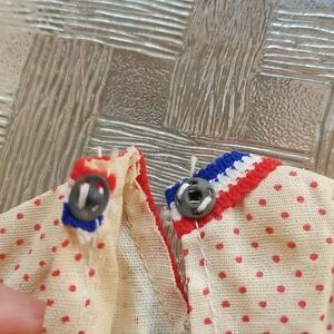 in vintage condition yellow stains on both doll clothes its to fragile i don't want to damage more the material not sure if the shoes are vintage /sale as is